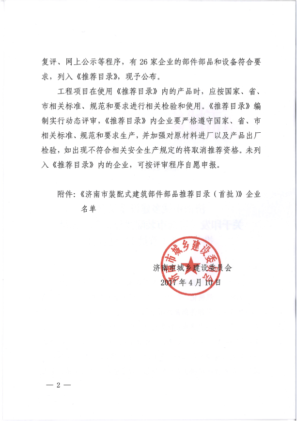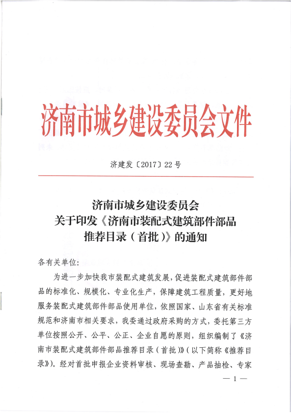 《济南市装配式建筑部件部品推荐目录(首批)》企业