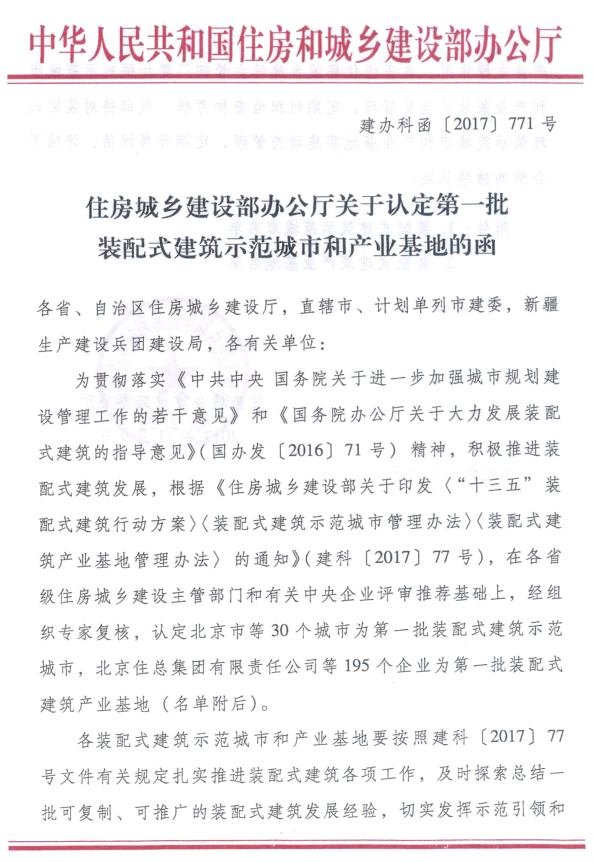 国家建筑产业化生产示范基地